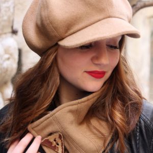 This beige newsboy cap brings a touch of vintage elegance into modern wardrobes. With its soft wool-blend fabric and structured eight-panel design, it perfectly balances casual style with refined sophistication.