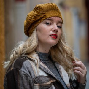 This corduroy beret is more than a seasonal accessory—it’s a statement of retro elegance. The mustard shade adds a pop of warmth to neutral outfits, while the corduroy texture makes it a perfect blend of fashion and comfort.